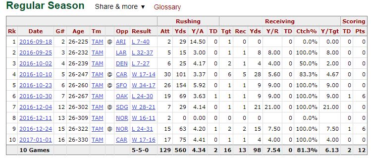 Ever since we flipped the calendar to 2017 and the “expert rankings” started to make their way online, one theme has been consistent here at the Roto Street Journal. Our very own The Wolf couldn’t believe his eyes when he had to scroll WAY down these rankings in order to find Doug Martin‘s name listed so low. Sure, Martin had a rough 2016 season in which he was drafted high in fantasy leagues based off his 2015 production. On top of that, Martin appeared in only eight games in 2016, while also receiving a three game suspension starting in 2017.