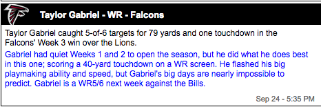 Taylor Gabriel (WR – ATL, 20% owned)