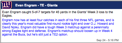 Evan Engram (TE – NYG, 38% owned)
