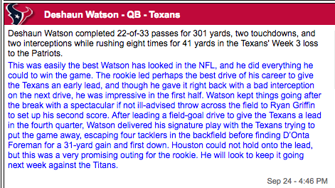 Deshaun Watson (QB – HOU, 14% owned)