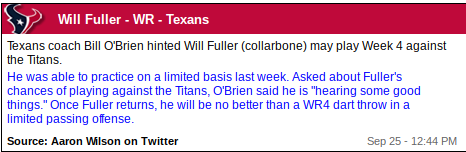 Will Fuller (WR – HOU, 3% owned)
