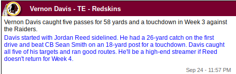 Vernon Davis (TE – WAS, 8% owned)
