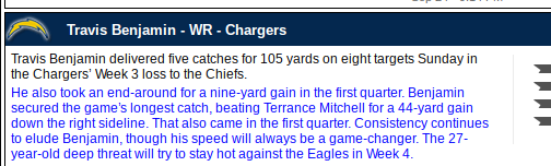 Travis Benjamin (WR – LAC, 5% owned)