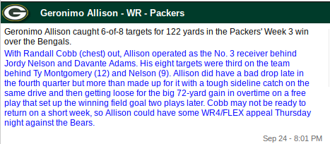 Geronimo Allison (WR – GB, 9% owned)