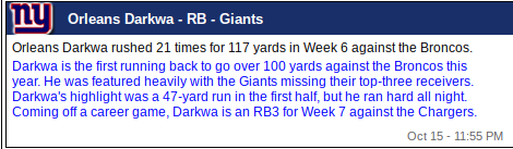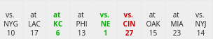 Coming off a Bye Week so no stats were recorded, but check out this dream schedule from Week 7 – 16: