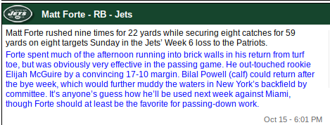 Similarly coming off a bye but far more likely to be owned, Dalton would make the ideal “committee QB” over the next six weeks.. He alternates between nightmarish upcoming matchups (PIT this week, Jax in Week 9, Den Week 11) and some of the softest defenses in the league (IND, TEN, CLE):