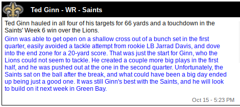 Ted Ginn Jr. (WR – NO, 43% owned)