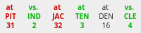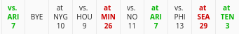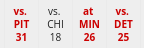 Coming off a Bye Week so no stats were recorded, but check out this dream schedule from Week 7 – 16: