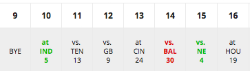 The post-JJ Watt Texans have been scored on in bunches, and have particularly struggled with quarterbacks with solid pocket mobility — they are currently surrendering the third most FPs to signal callers. If nothing else, Brissett is a strong scrambler, and can rack up some leg points. With most sites saying to turn to Jay Cutler, I would 100% go Brissett here.