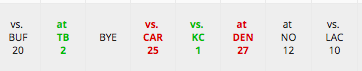 Unfortunately, the schedule is NOT working in Davis’ favor, as he faces the 27th easiest WR schedule with some nightmare matchups forthcoming: