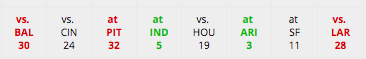 Breakdown: Coming off a bye, there’s a chance an impatient owner cut Kupp or Woods, which would be a major mistake to capitalize on. Kupp in particular drips in upside, as he is second in the NFL with 13 Red Zone Targets and currently leads Rams WRs in FPs. Kupp has been boom-or-bust, but those peaks and valleys have been predictable, and Kupp has roasted in the right matchups — dandy, given he gets the 6th easiest schedule among WRs including plenty of cupcakes.