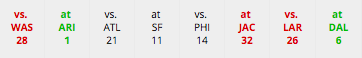 Season Long Ceiling: Bryant is traded or is inactive, and Schuster continues feasting on the weakened coverage around him to be a high-end WR2 from here on out.