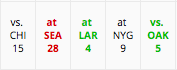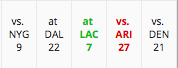 Plus, with a playoff schedule against three bottom 10 opponents vs. RBs (including two bottom five), the scoring chances should remain plentiful. While others call it a fluke, have faith in the line and overall offense. Clement is for real.