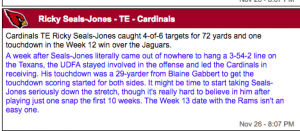 1. Ricky Seals-Jones (TE – ARI, 3%)