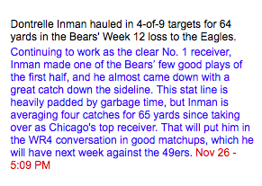 4. Dontrelle Inman (WR – CHI, 9%)