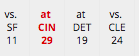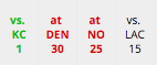 - The schedule looks like complete cake, but the two dates with NE are misleading. In their seven-game win streak, the Patriots are only allowing 13.1 points per game, and have been especially clamped down in the secondary. These numbers are completely skewed from their horrific early season play.