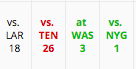 Unlike the limitless ceiling of Westbrook, Kearse feels completely capped, especially considering the tough schedule. Moreover, he’s taken a clear backset to Robby Anderson, and his 20 FP Week 12 explosion was just his first double digit effort over his past six games, despite Josh McCown going ham. In fact, he had been held under 40 yards for four straight contests. The awful dud risk is very real.