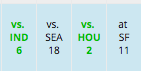 This is especially true with some juicy matchups forthcoming. Chicago has been fairly tough, but Houston gets destroyed deep routinely, and Tennessee has been equally abysmal. Goodwin’s arrow continues pointing up, and no one seems to be noticing.