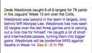 4. Dede Westbrook (WR – JAX, 28%) *Favorite Week 15 Streamer*