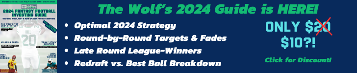 For more Round-by-Round strategy, be sure to check out The Wolf’s 2024 Fantasy Guide! For just $10, you can support a small fantasy brand while getting the guide that pushes you over the edge!