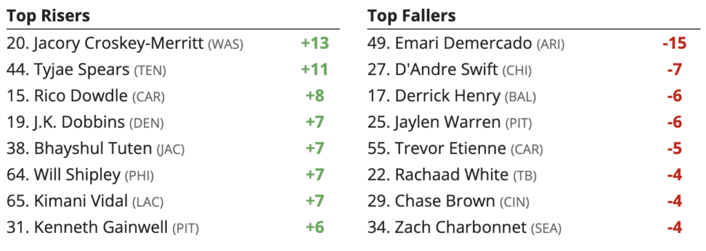Week 6 Running Back (RB) Rankings Higher and Lower