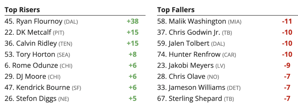 Week 6 Wide Receiver (WR) Rankings Higher and Lower