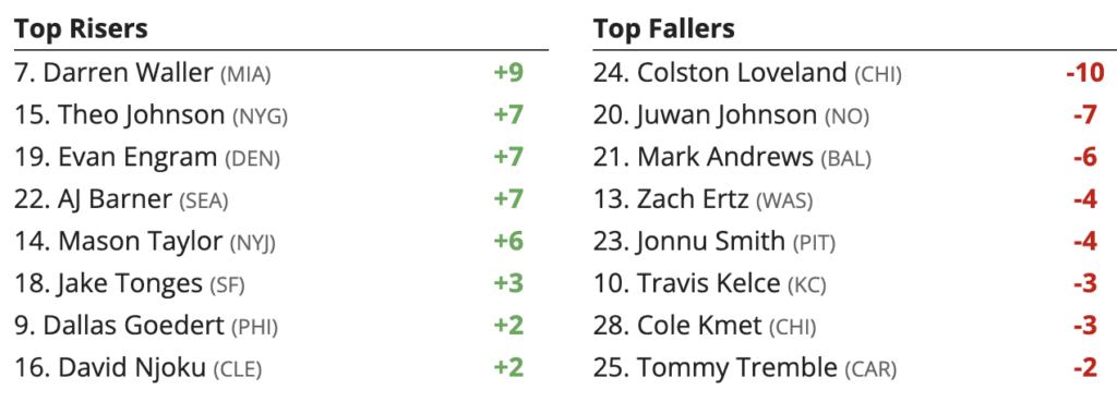 Week 6 Tight End (TE) Rankings Higher and Lower