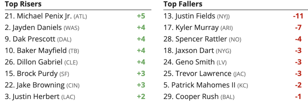 Week 6 Quarterback (QB) Rankings Higher and Lower