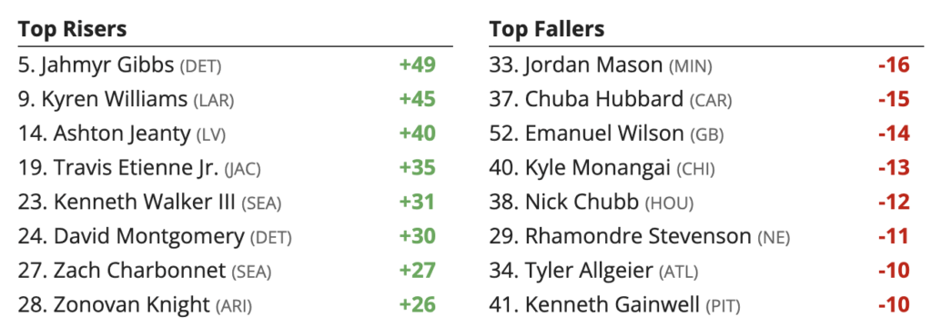 Here are the players I am higher or lower on in my first draft of Week 9 Fantasy Football Rankings – Updated Sunday, 10/26/25