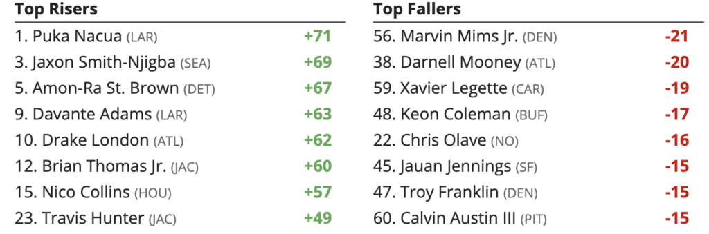 Week 9 Wide Receiver (WR) Rankings Higher and Lower