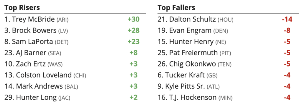 Week 9 Tight End (TE) Rankings Higher and Lower