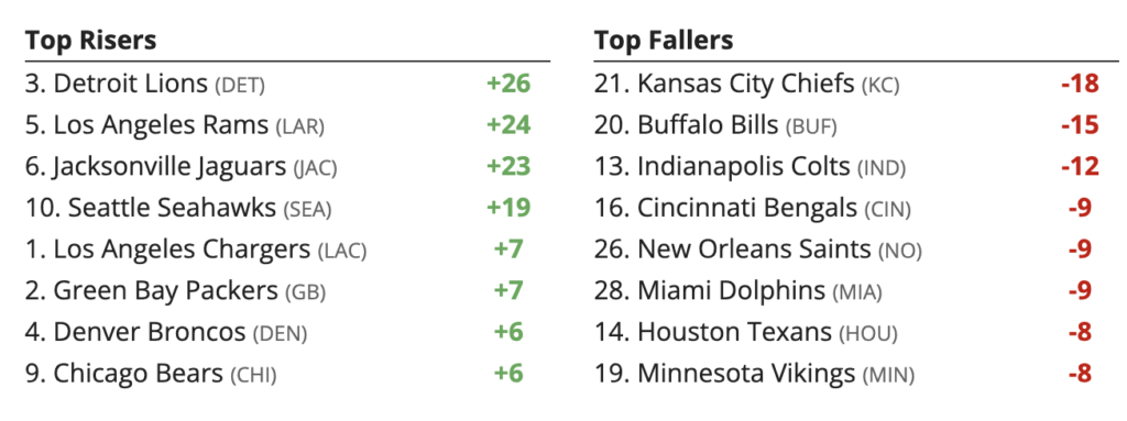 Week 9 Defense / Special Teams (DST) Rankings Higher and Lower