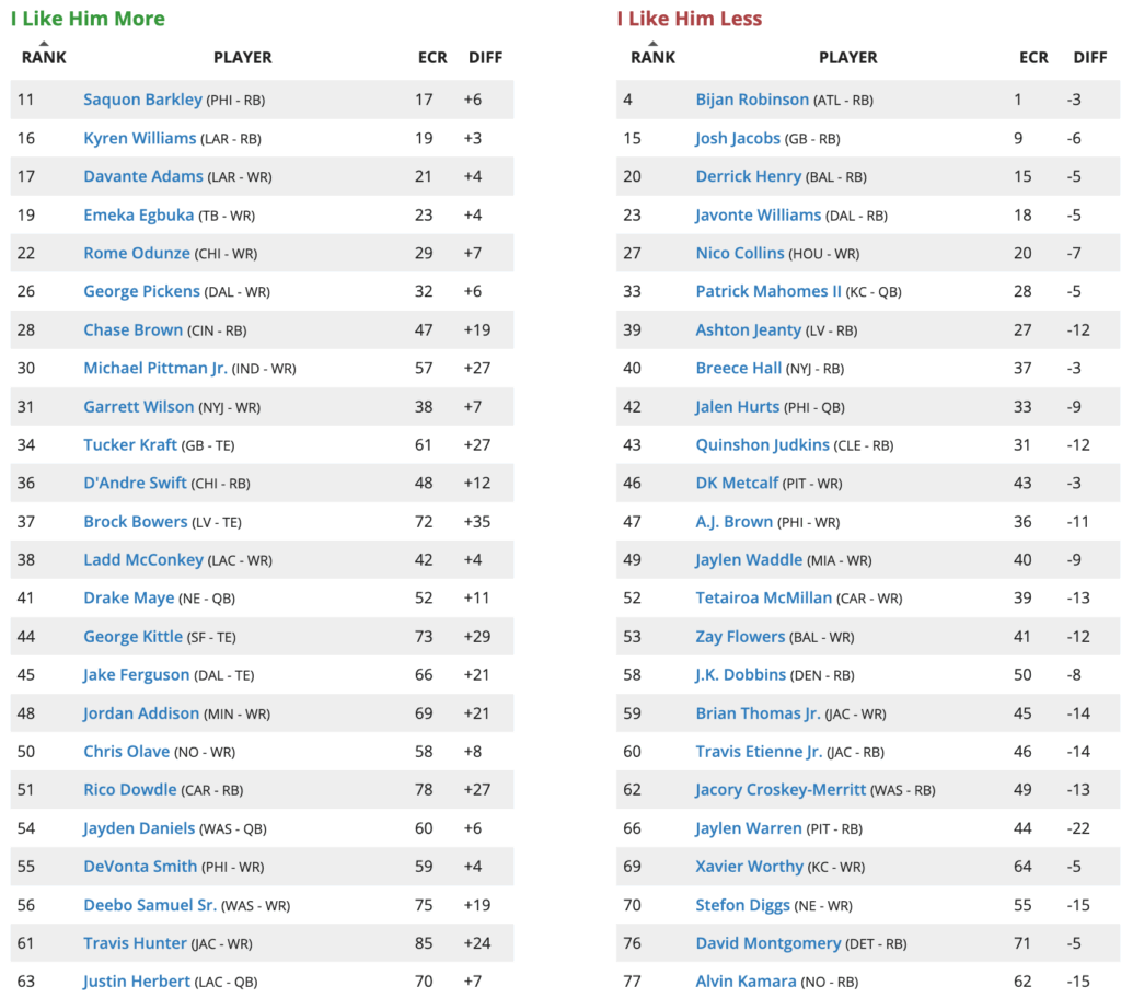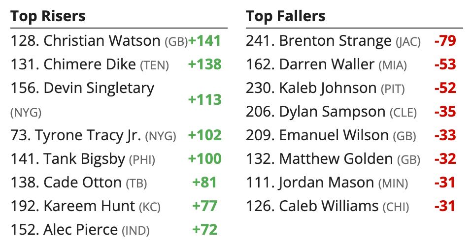 2025 Rest of Season Fantasy Football Rankings – Overall Risers & Fallers