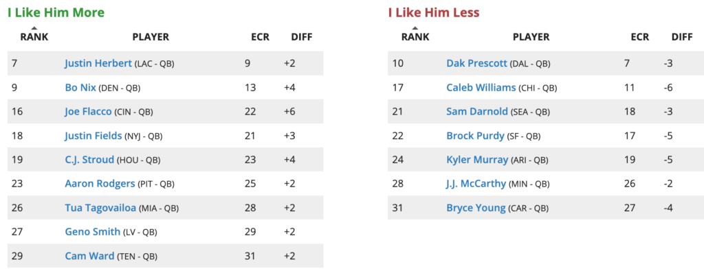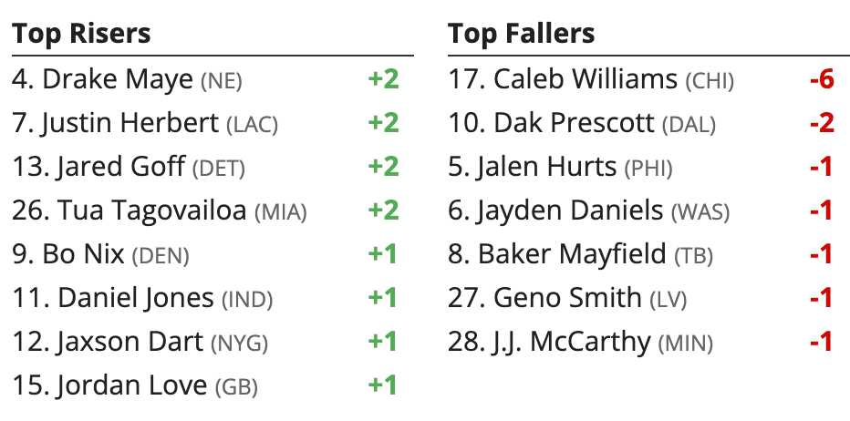 2025 Rest of Season Fantasy Football Rankings – QB Risers & Fallers