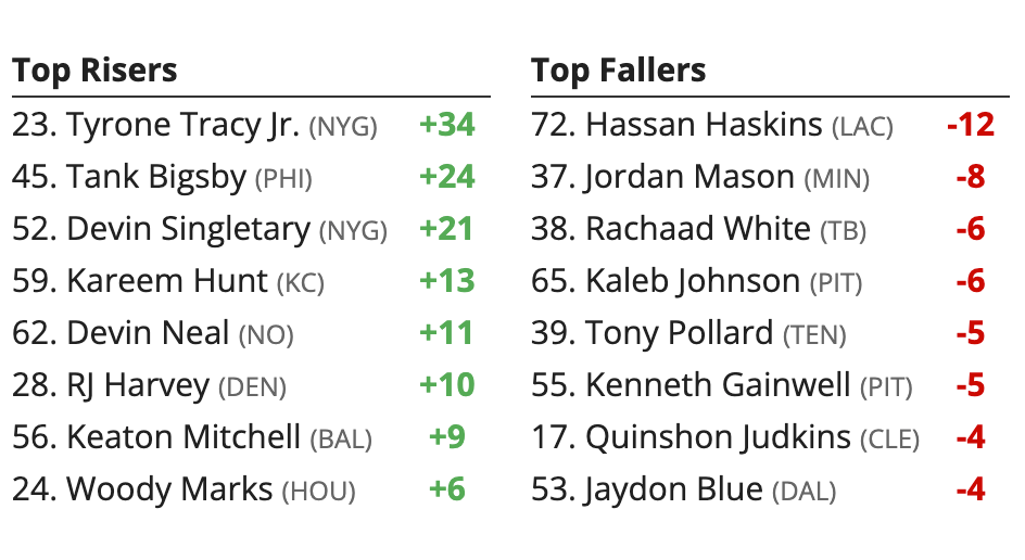 2025 Rest of Season Fantasy Football Rankings – RB Risers & Fallers