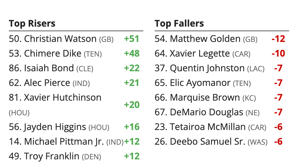 2025 Rest of Season Fantasy Football Rankings – WR Risers & Fallers