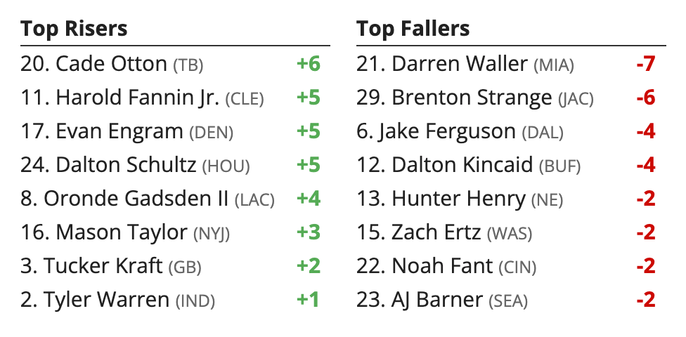 2025 Rest of Season Fantasy Football Rankings – TE Risers & Fallers