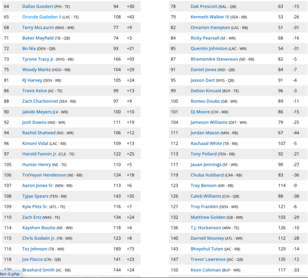 Please, send me any and all feedback. Who am I insanely high on? What player if painfully low? Whose value is bound to swing the most? Hit me up on Twitter and sound off now!