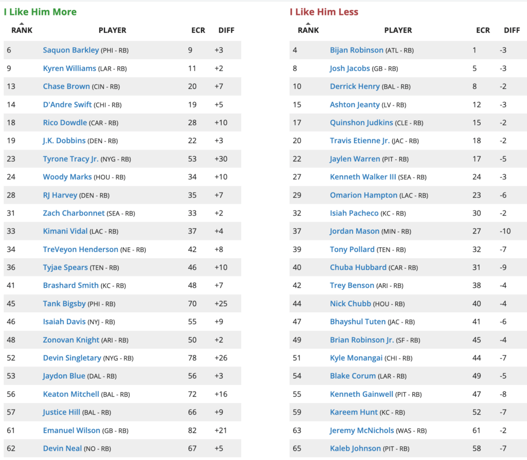 Fantasy Football values are always changing (hence why you need to bookmark our Fantasy Football Stock Watch & subscribe to catch all our YouTube Livestreams). Rest of Season Rankings require the right balance of tracking and analyzing key information each Thursday, Sunday, and Monday while also projecting what will happen in the future.