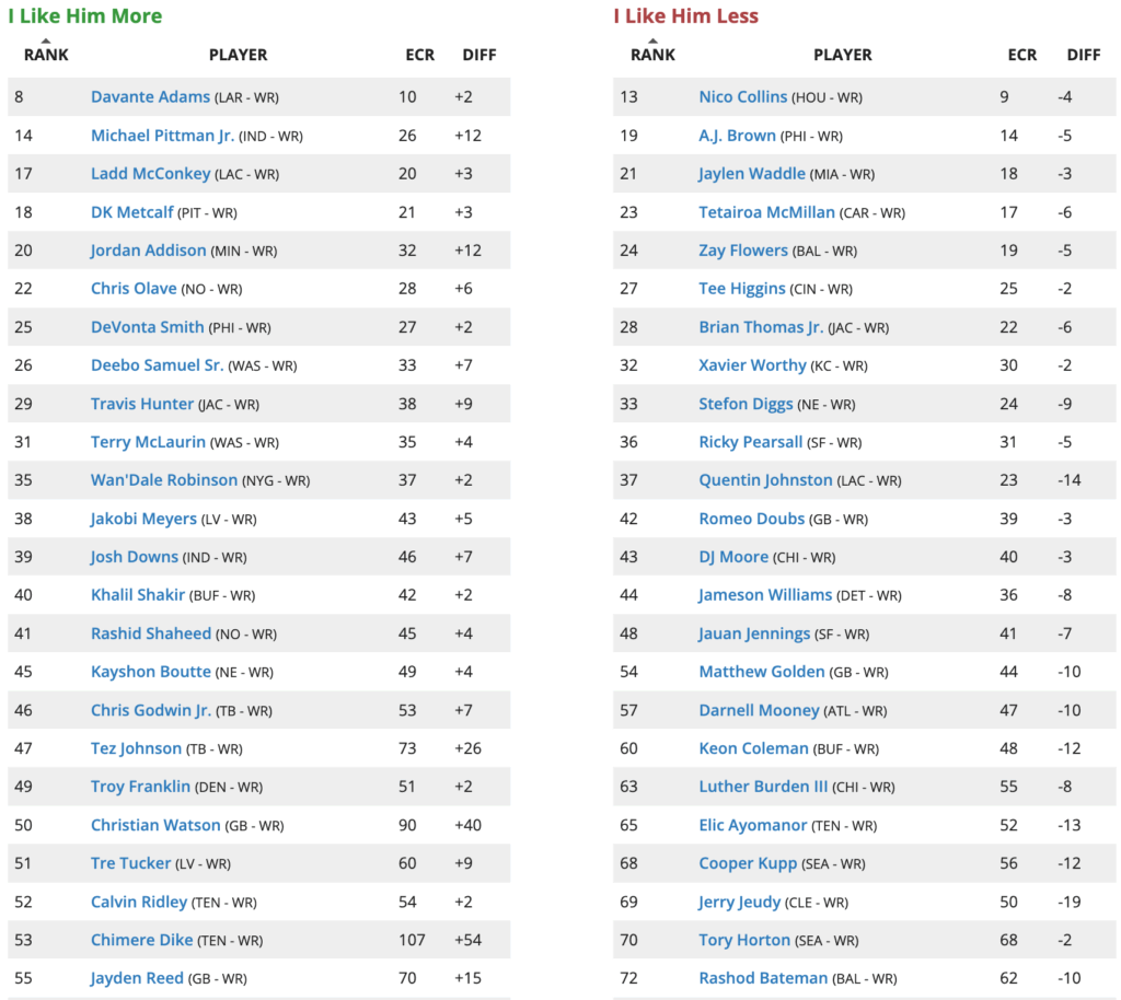 2025 Rest of Season Rankings Fantasy Football – WR Higher and Lower (Week 9 Update)