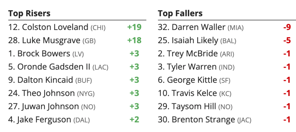 2025 Rest of Season Fantasy Football Rankings – TE Risers & Fallers