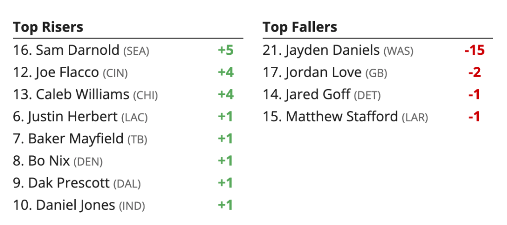 2025 Rest of Season Fantasy Football Rankings – QB Risers & Fallers