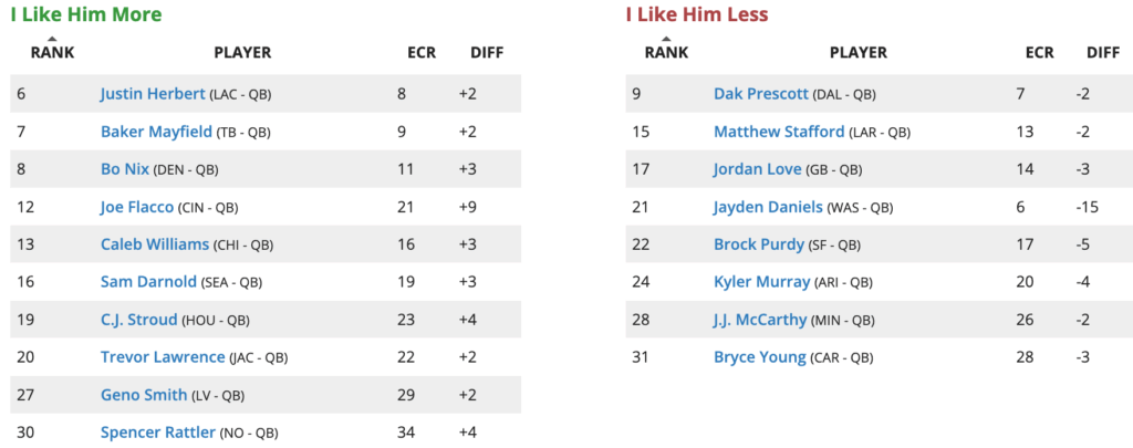 2025 Rest of Season Rankings Fantasy Football – QB Higher and Lower (Week 9 Update)