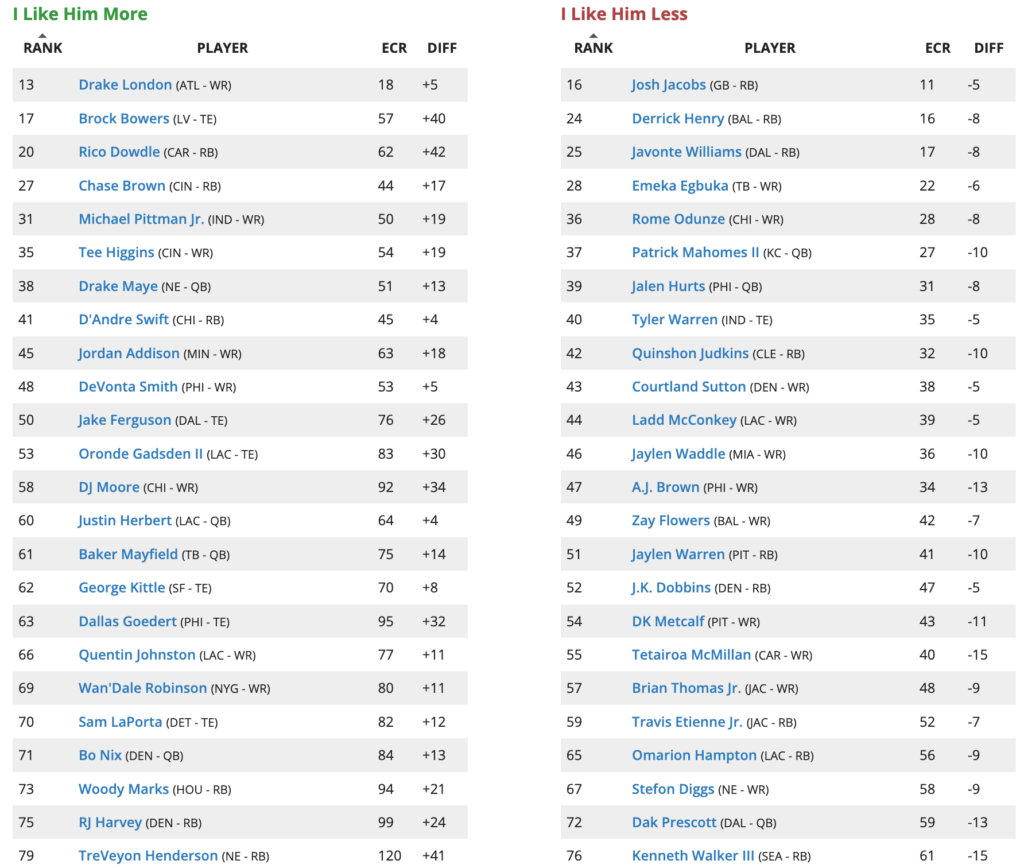 2025 Rest of Season Rankings Fantasy Football – Higher or Lower