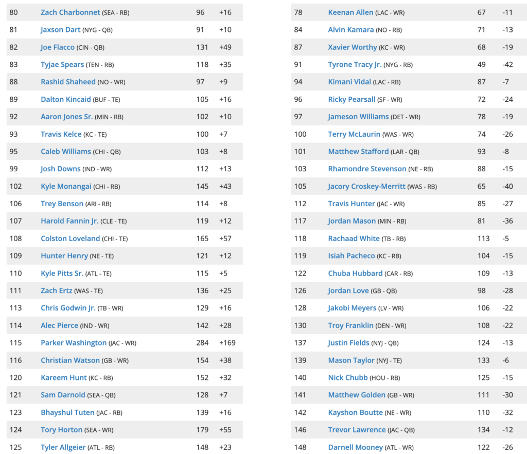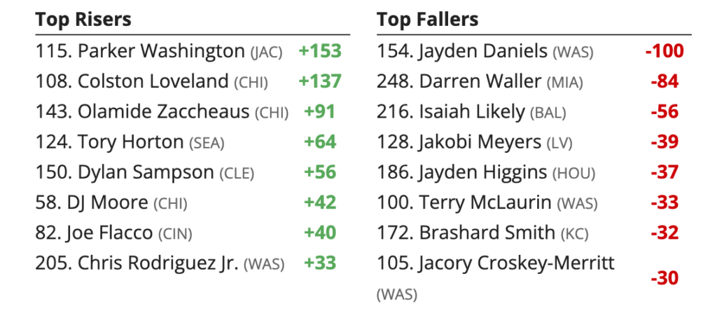 2025 Rest of Season Fantasy Football Rankings – Overall Risers & Fallers