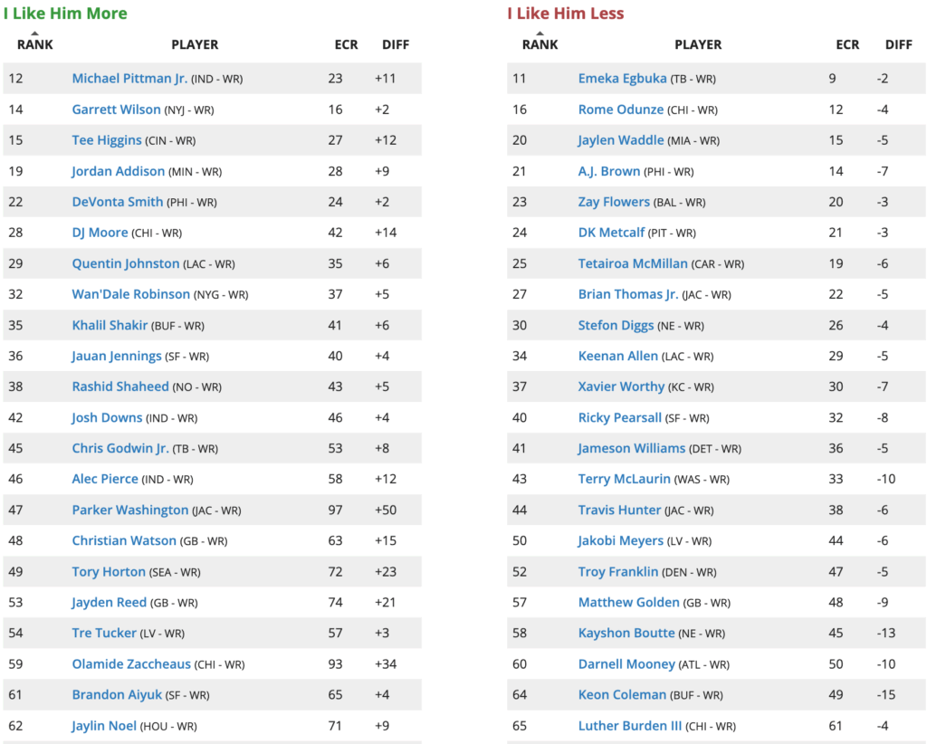 2025 Rest of Season Rankings Fantasy Football – WR Higher and Lower (Week 9 Update)