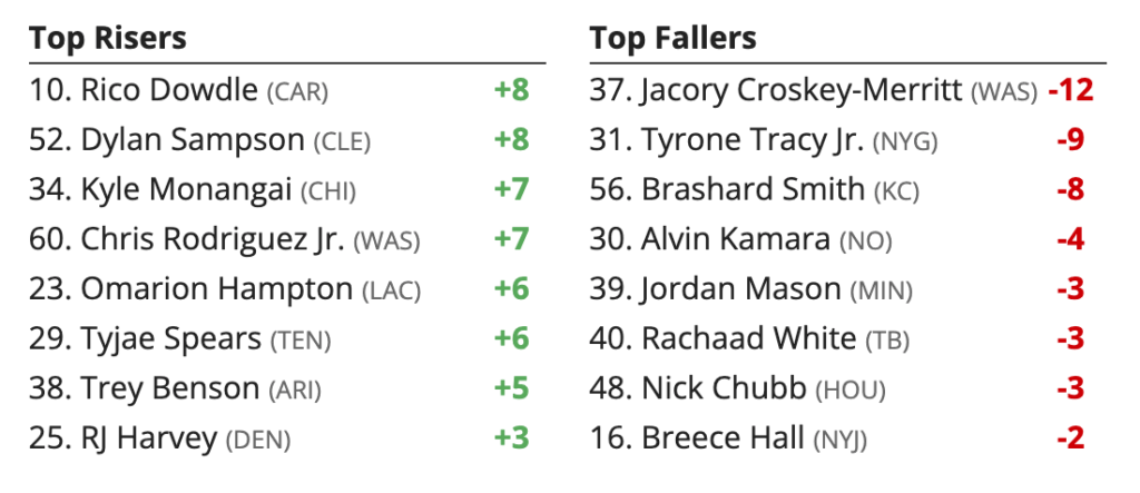 2025 Rest of Season Fantasy Football Rankings – RB Risers & Fallers