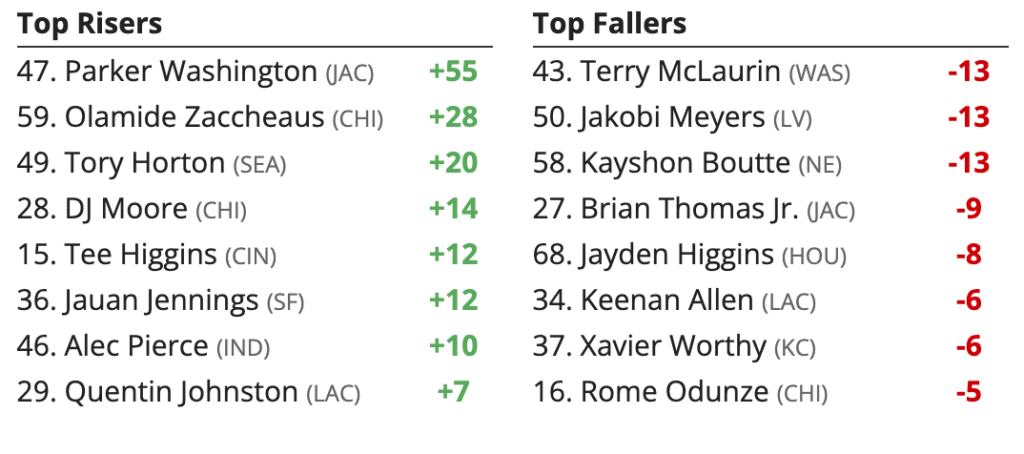 2025 Rest of Season Fantasy Football Rankings – WR Risers & Fallers