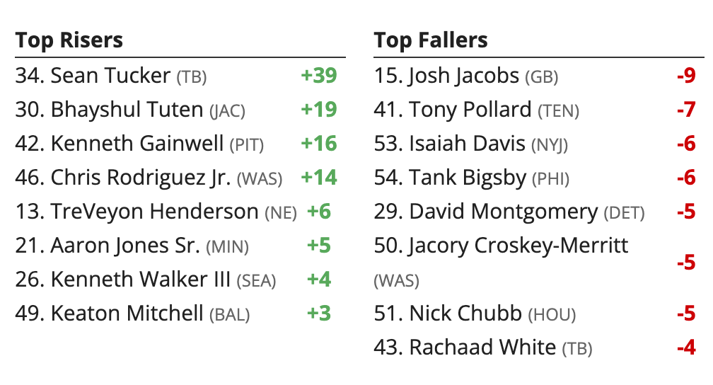 2025 Rest of Season Fantasy Football Rankings – RB Risers & Fallers Week 12 – Updated Wednesday