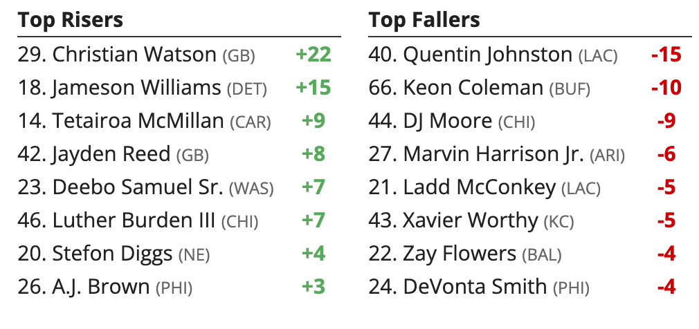 2025 Rest of Season Fantasy Football Rankings – WR Risers & Fallers Week 12 – Updated Wednesday
